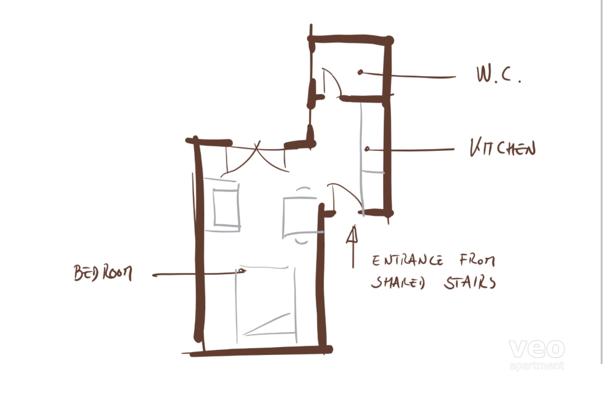 Luminoso, completamente reformado y equipado: amplio dormitorio con cama doble, cocina con los utensilios y electrodomésticos principales y cuarto de baño completo con ducha.