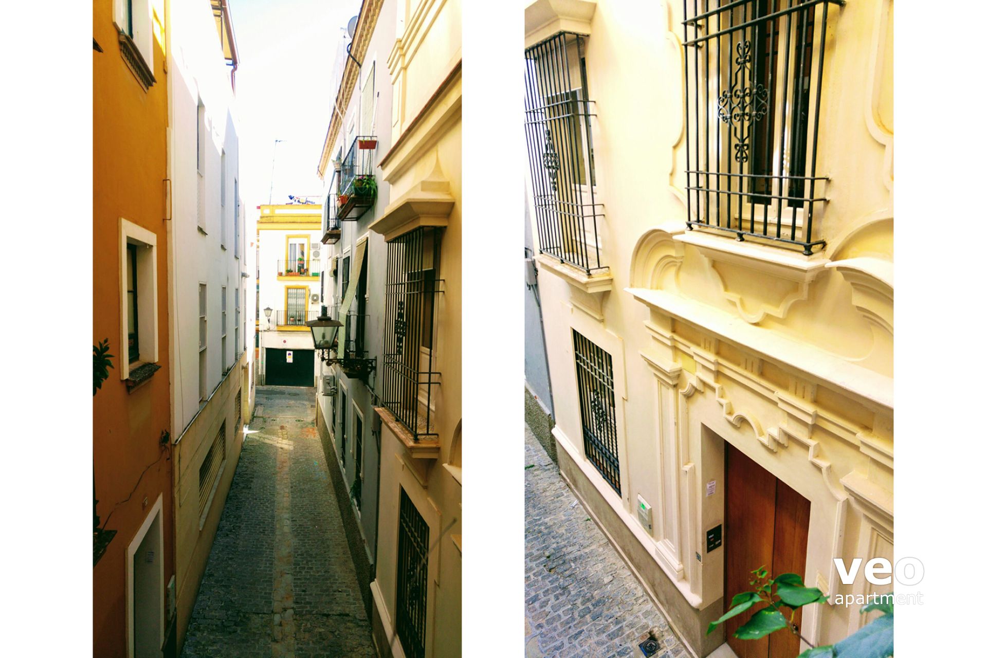 Estudio para 2 personas situado en el corazón de la ciudad de Sevilla. Está en la segunda planta de un edificio sevillano con patio central, sin ascensor.